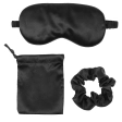 Шовкова маска для сну, резинка для волосся і чохол для зберігання в чорному кольорі